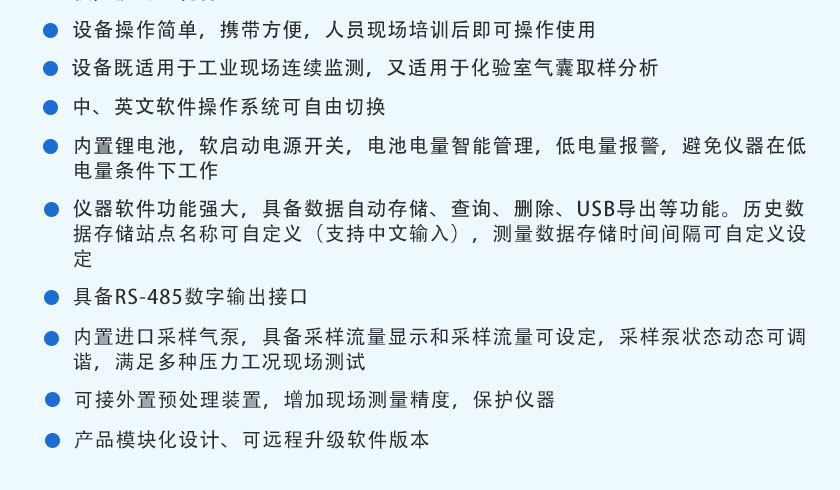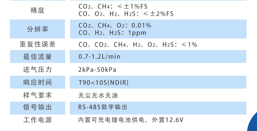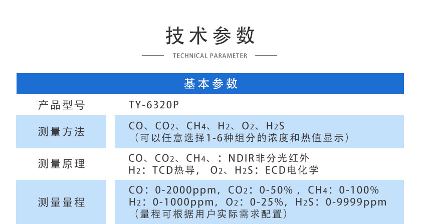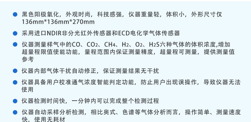 CO、CO2、CH4:NDIR非分光紅外;H2:TCD熱導;O2、H2S:ECD電化學