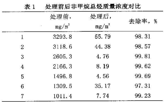 處理后非甲烷總烴質量濃度在60mg/m2以下,去除率95%以上。