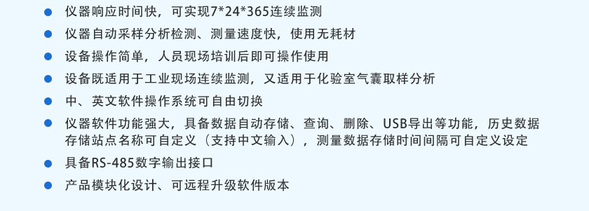 (7)儀器響應(yīng)時(shí)間快,可實(shí)現(xiàn)7*24*365連續(xù)監(jiān)測(cè)。