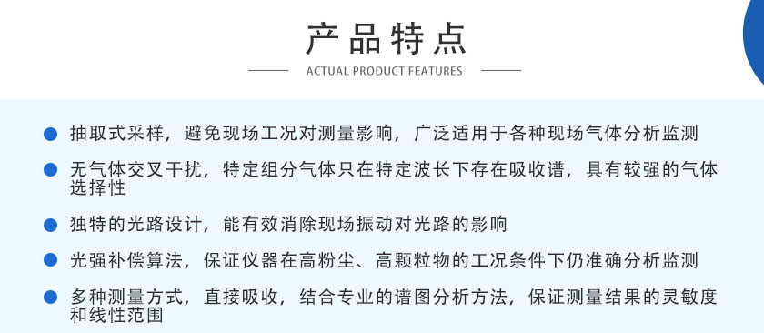 用國際先進的TDLAS激光技術,主要用于測量各種氣體中的HF、HCL、O2、CO、CO2、H2O、O2、NH3、CH4?等氣體體積濃度及熱值。