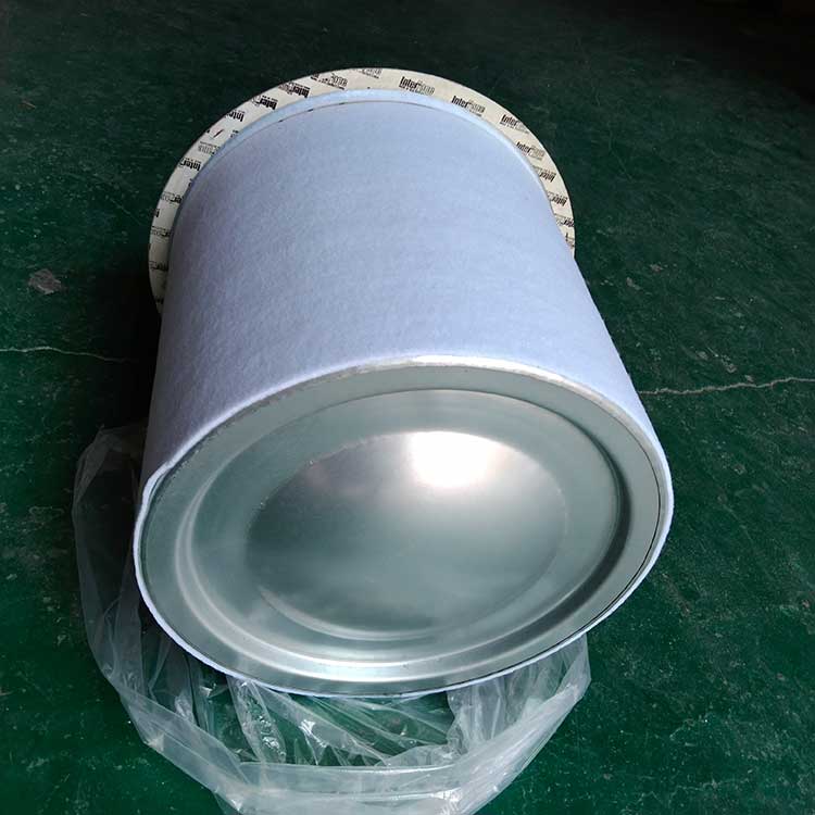 油氣分離元件是決定空壓機壓縮空氣品質的關鍵部件,高質量的油氣分離元件不僅可保證壓縮機的高效率工作,且濾芯壽命可達數千小時。從壓縮機頭出來的壓縮空氣夾帶大大小小的油滴,大油滴通過油氣分離罐時易分離,而小油滴(直徑1μm以下懸浮油微粒)則必須通過油氣分離濾芯的微米級玻纖濾料層過濾。油微粒經過濾材的擴散作用,直接被濾材攔截以及慣性碰撞凝聚等機理使壓縮空氣中的懸浮油微粒很快凝聚成大油滴,在重力作用下油凝聚在油分芯底部,通過底部凹處回油管進口返回機頭潤滑油系統,從而使壓縮機排出更加純凈無油的壓縮空氣。壓縮空氣中的固體粒子經過油分芯時滯留在過濾層中,這就導致了油分芯壓差(阻力)不斷增加。隨著油分芯使用時間增長,當油分芯壓差達到0.08到0.1Mpa時,或者壓縮空氣出口產生明顯的含油量時,濾芯必須更換,否則增加壓縮機運行成本(耗電或耗油)。