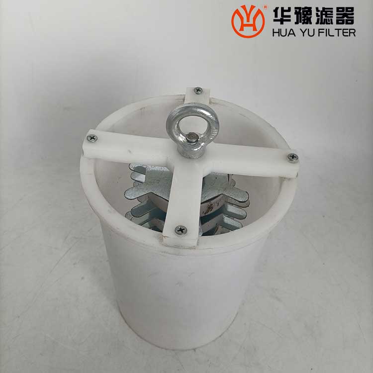 利用潤滑油自重狀態(tài)下的流動,經(jīng)簡單的網(wǎng)過濾和磁場吸附,使污垢及時得以分離,磁網(wǎng)一體化裝置是由圓筒形過濾網(wǎng)(帶底座)和磁串組成,在潤滑油經(jīng)該裝置落入油箱時,油液中直徑大于網(wǎng)目尺寸的污垢和一些鐵質(zhì)微粒就會被阻擋于裝置內(nèi),從而達到分離的目的。