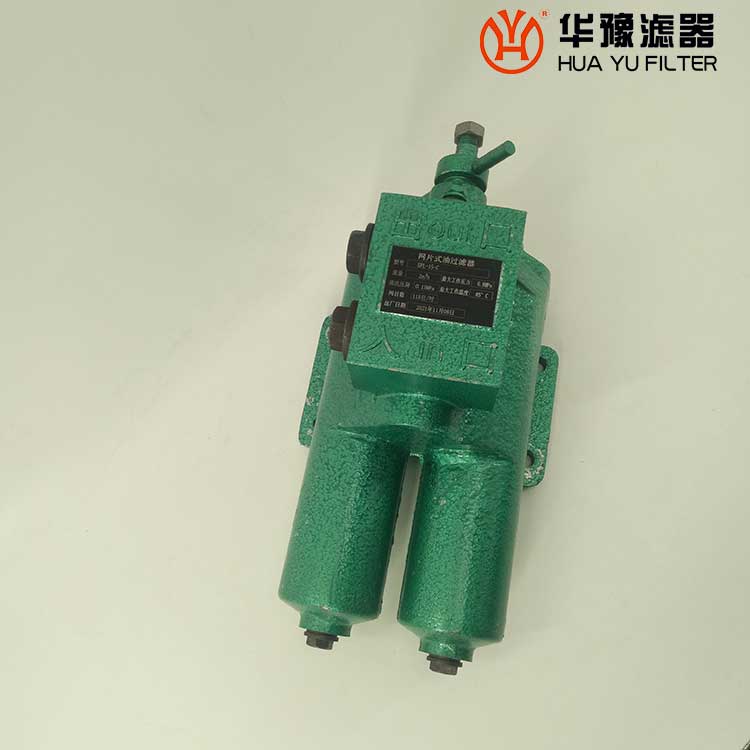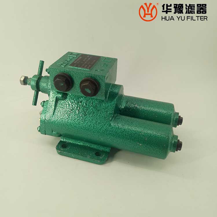每一濾芯組件由濾器蓋、濾芯套筒、濾片及濾片圈等組成,濾器蓋頂部裝有放氣閥,供排出濾器內(nèi)腔的空氣用。 濾片套在濾芯套筒上,是濾器的主要過濾元件,由濾網(wǎng),支承網(wǎng)及波紋隔盤等組成,濾網(wǎng)的網(wǎng)目數(shù)由用戶根據(jù)需要選用。轉(zhuǎn)換閥體是由鑄鋁鋁合金制成的椎體,與閥孔研磨配合,閥體上鑄有上下兩油道孔,上油道孔一端通濾芯上方油腔,一段通濾器出口,下油道孔一段通濾芯腔,一段通濾器進口,當(dāng)轉(zhuǎn)換閥迅速從一極限位置轉(zhuǎn)至另一極限位置時,閥體將一濾芯腔的通路關(guān)閉,而將另一濾芯腔的通路打開,此時,壓力油從濾器進口流入濾芯腔,經(jīng)濾網(wǎng)過濾后的清潔油經(jīng)上方油腔從出口流出,達到濾清油液的目的。轉(zhuǎn)換閥體軸端頭上的箭頭指向接通的濾芯腔的一邊。