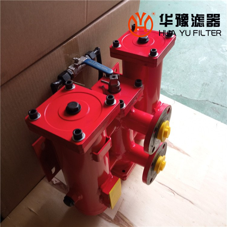 該過濾器可安裝在控制元件或執(zhí)行元件前的高壓管路上,用以保護(hù)控制元件及執(zhí)行機(jī)構(gòu)。特別適用自動控制系統(tǒng)中高精度伺服元件及柱塞元件的保護(hù),可有效控制污染,延長元件使用壽命。工作時一只濾筒通油,另一只濾筒不通油備用。當(dāng)工作濾筒的濾芯堵塞至壓差發(fā)訊器壓力指示值為0.5MPa時,發(fā)訊器發(fā)訊,此時應(yīng)及時打開壓力平衡閥、轉(zhuǎn)動換向閥啟用備用濾筒(換向閥轉(zhuǎn)動到位后關(guān)閉壓力平衡閥)。再只需旋開螺塞放完被堵塞濾筒內(nèi)的油液,再旋下筒體,就可更換已堵塞的濾芯。如因故未能及時切換換向閥啟用備用濾筒,導(dǎo)致壓差持續(xù)上升至旁通閥開啟壓力0.6MPa時,旁通閥會自動開啟,以避免由于壓力繼續(xù)上升,濾芯破裂造成再污染。但此時油液未經(jīng)過濾對系統(tǒng)安全造成極大危害,應(yīng)盡可能避免旁通閥被開啟。