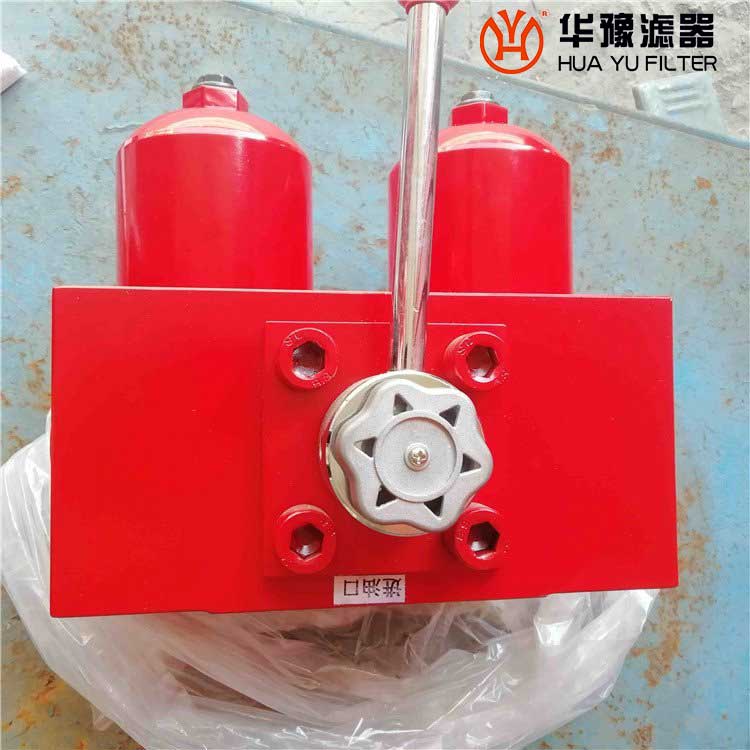 SGF系列雙筒高壓過濾器新型該過濾器由兩只單筒過濾器,換向閥、旁通閥、發訊器等組成,能使系統在不停機狀況下更換濾芯,使用于連續工作的液壓系統。當其中一只過濾器的濾芯堵塞至壓差發訊器壓力指示值為0.5MPa時,發訊器發訊、這時必須更換濾芯。只要轉動換向閥、另一只備用過濾器即刻工作,這時只需要放開螺塞放完油、再旋下外殼、就可更換已堵塞的濾芯。需更換濾芯側過濾筒,允許少量內泄漏。如因故未能及時更換濾芯壓差繼續升至旁通閥開啟壓力為0.6MPa時,旁通閥自動開啟以避免由于壓力繼續上升,濾芯破裂造成再污染,但用戶必須在發訊器發訊時更換濾芯。