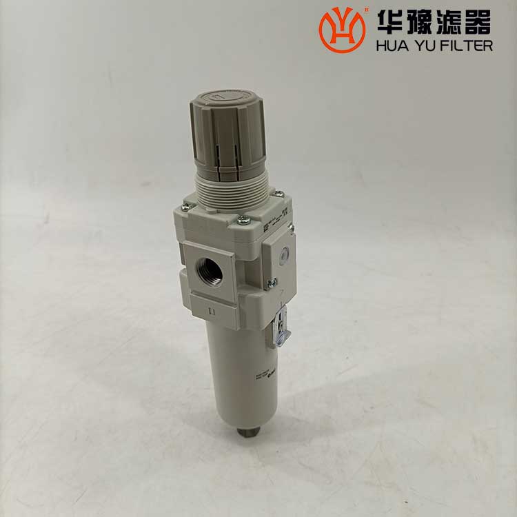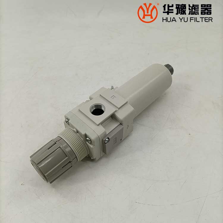 從進口流入的壓縮空氣,經導流片的切線方向的缺口強烈旋轉,液態(tài)油水及固態(tài)污染物受離心作用,被甩到水杯內壁上,再流至底部。除去了液態(tài)油水及雜質的壓縮空氣,通過濾芯進一步清除微小固態(tài)顆粒,然后從出口流出。 空氣中的溶膠狀的威力是能通過5um的濾芯的,擋水板能防止下部的液態(tài)油水被卷口氣流中,聚積在水杯內的冷凝水,按動手動按針,便可以從排水口指出。濾芯有金屬網型、燒結型和纖維凝聚型。燒結型有銅珠燒結、樹脂燒結和陶瓷燒結等。銅珠燒結濾芯的表面和內部都起到過濾作用,強度好,***,可清洗幾次重復使用。纖維凈聚型有樹脂類,人造纖維類材料等。金屬網型知識表面起到過濾作用。